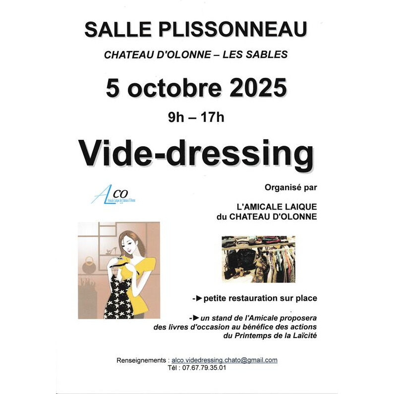 Vente de vêtements et accessoires d'habillement de seconde main par particuliers - boissons et petite restauration seront proposées par notre association ainsi qu'un stand de livres d'occasion vendus à petits prix au bénéfice des actions du printemps de la laïcité (manifestation qui valorise l'apprentissage du bien-vivre ensemble).