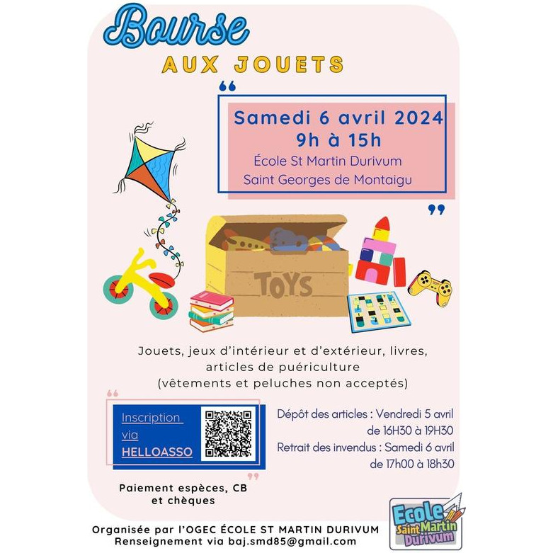 Vente des articles : Samedi 6 avril de 9h00 à 15h00