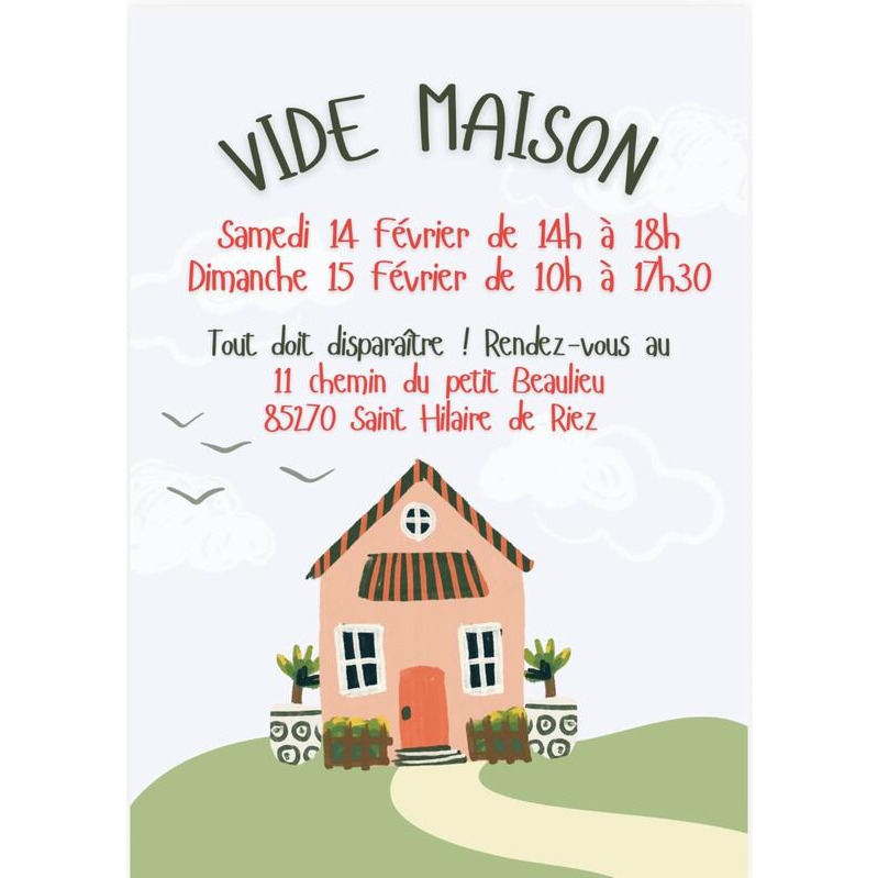 Vide maison le samedi de 14h à 18h et le dimanche de 10h à 1730. Tout doit disparaître. Petits prix garantis. ( vaisselle, bibelots, tableaux, appareils électriques, livres, ustensiles de cuisine, outillage, affaires de camping, pulvérisateur électrique etc…)