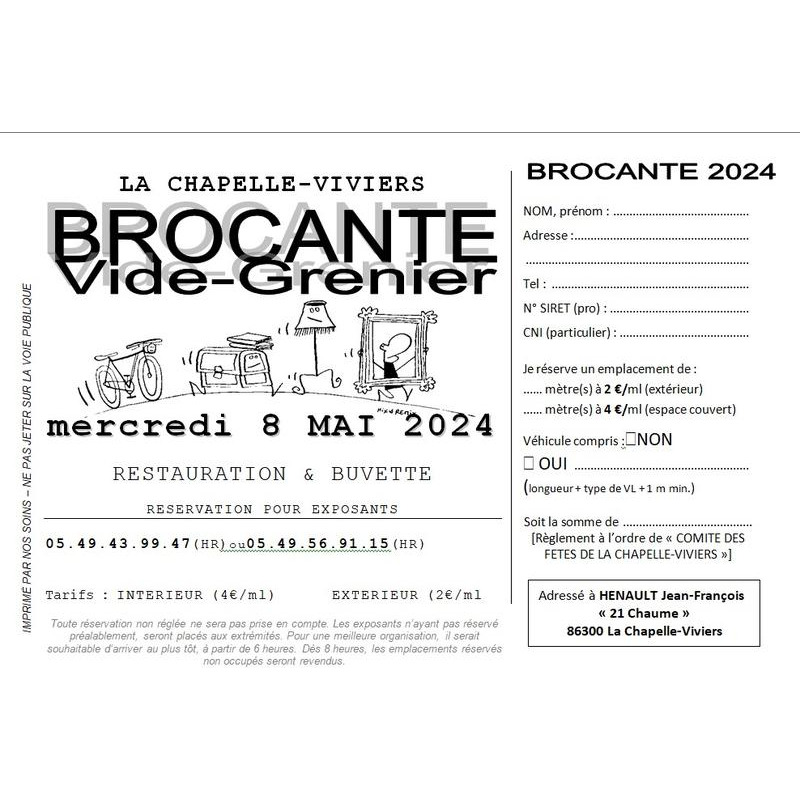 Le comité des fêtes de la chapelle-viviers organise sa brocante-vide grenier mercredi 8 mai toute la journée