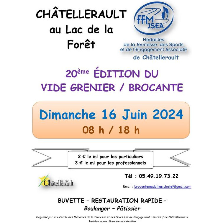L'association "cercle châtelleraudais des médaillés de la jeunesse et des sports et de l'engagement associatif de châtelleault" organise son 20ème vide grenier / brocante