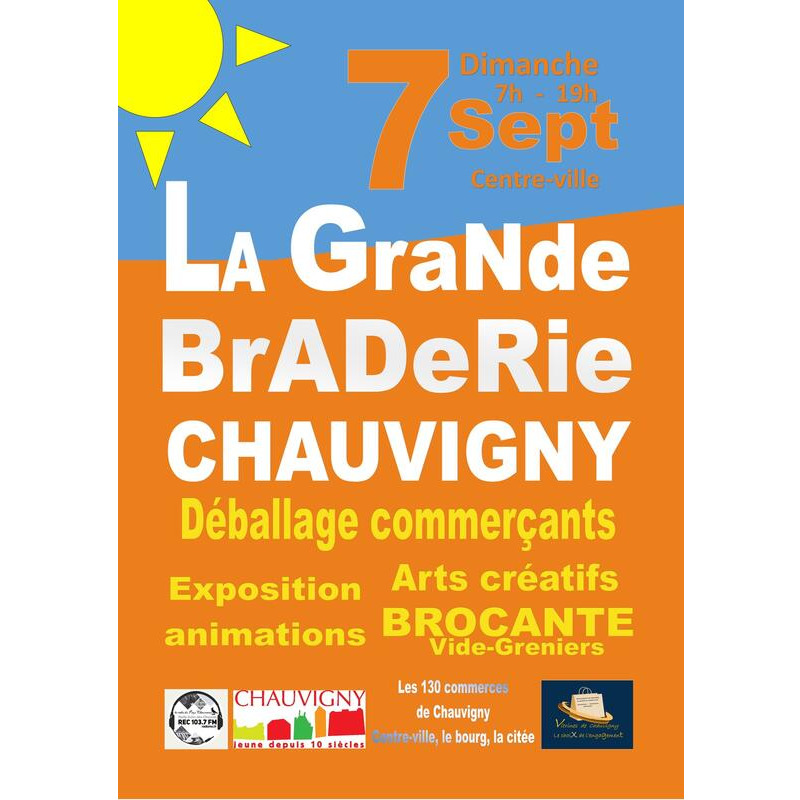 Grande braderie de chauvigny: déballage commerçants, brocante et vide-greniers. Marché artisanaux et des arts créatifs, animations, jour de boeuf à la chauvinoise...