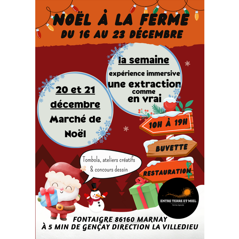 Alors, rendez-vous du 16 au 23 décembre de 10h à 19h à la ferme apicole entre terre et miel (marnay-86160)