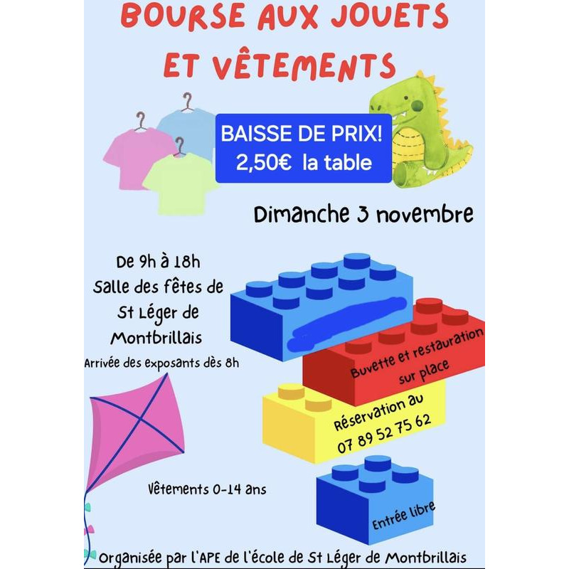 Bourse aux jouets et vêtements et aussi articles de puériculture, restauration sur place.