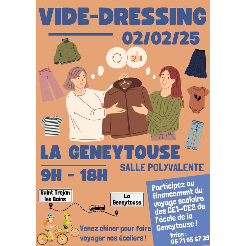 Vide-dressing organisé par les parents d'élèves afin d'aider au financement du voyage scolaire de la classe de ce1-ce2 à st trojan les bains. Pas d'exposant. Vente organisée par les parents d 'élèves.