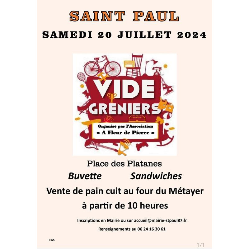 Vide grenier organisé par l'association a fleur de pierre