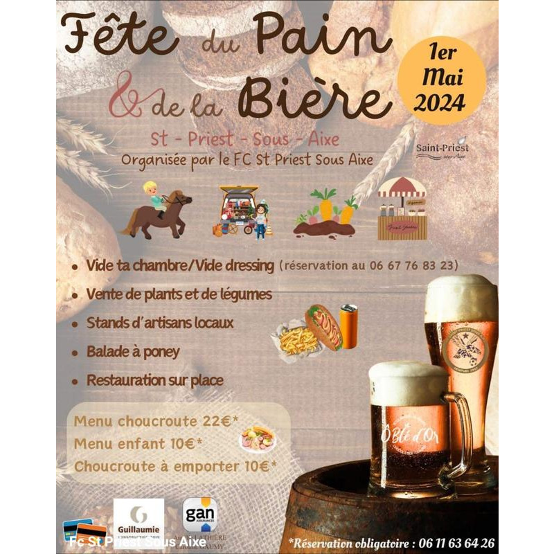 Le club de saint priest sous aixe organise la fête du pain et de la bière et son vide ta chambre le 1er mai. Venez nombreux