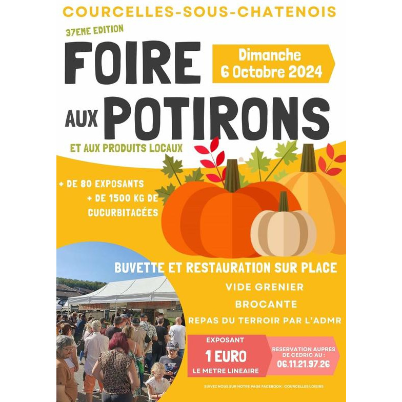 Vente de potirons, vide grenier, brocante, restauration sur place, bar toute la journée, repas du terroir organisés par l'admr dans le village de courcelles sous chatenois