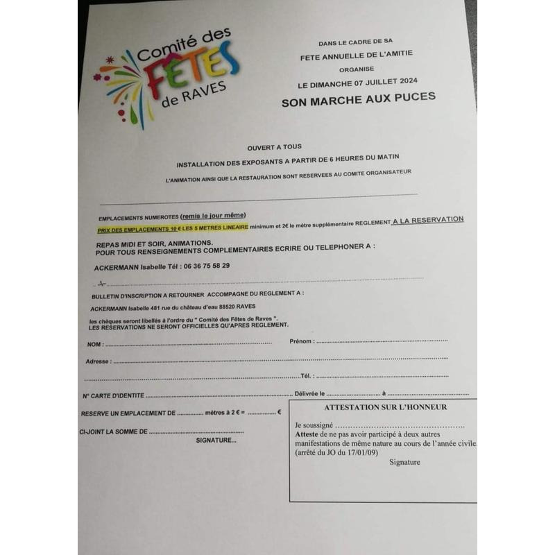 Comité des fêtes de raves organise la fête annuelle de l'amitié et son marché aux puces
