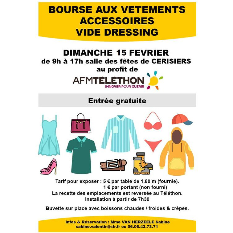 Bourse aux vêtements, accessoires de mode, chaussures / vide-dressing organisé au profit de l'afm téléthon