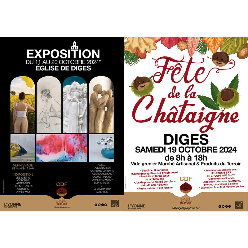 Fête traditionnelle d'automne, avec vide grenier, marché artisanal, produits du terroir, châtaignes grillés sur grilloir géant, jus de pommes bio pressé sur place, boudin préparé sous vos yeux, buvette , restauration, animations musicales, exposition de peintures ,sculptures, photos, exposition avicole et matériel ancien, plus de 12000 visiteurs en 2023!!!