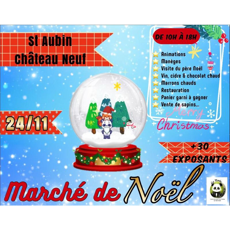 Animation, manège, visite du père noël, vin:cidre/chocolat chaud, marrons chauds, restauration, panier garni à gagner, vente de sapin.