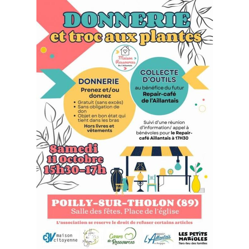 Appel à bénévoles pour un répare café et collecte d'outils.