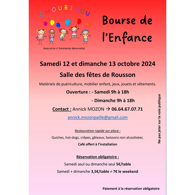 Bourse aux jouets, puériculture