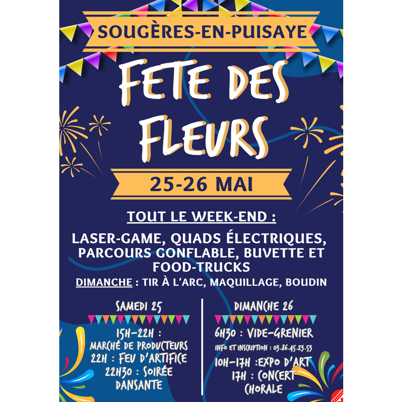 Un week-end complet de fête à sougères-en-puisaye ! Tout le week-end : laser-game, karts électriques, parcours gonflable, buvette, restauration, ...