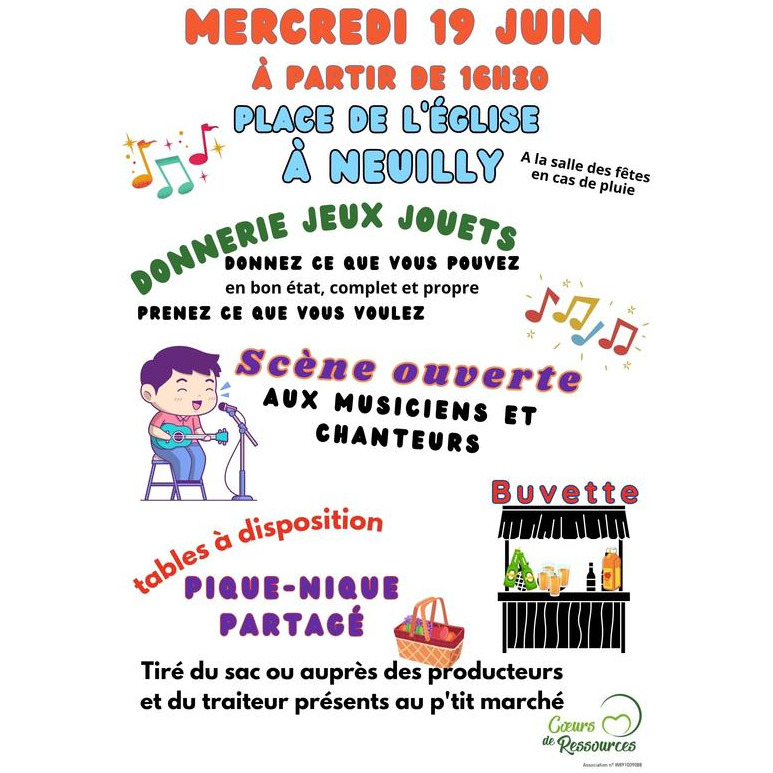 . Scène ouverte aux chanteurs et musiciens pour la fête de la musique et ambiance musicale