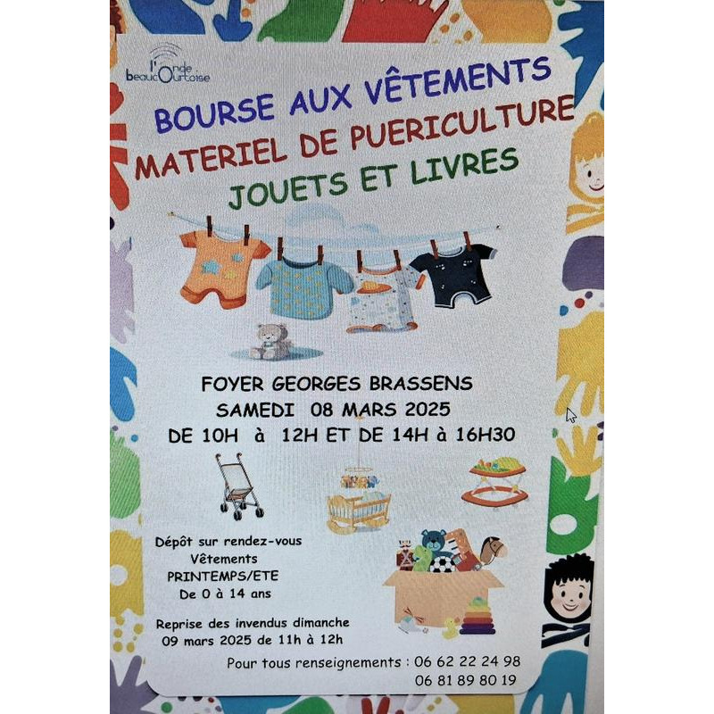 Bourse aux vêtements printemps/été jusqu'à 14 ans, matériel de puériculture, livres, jouets