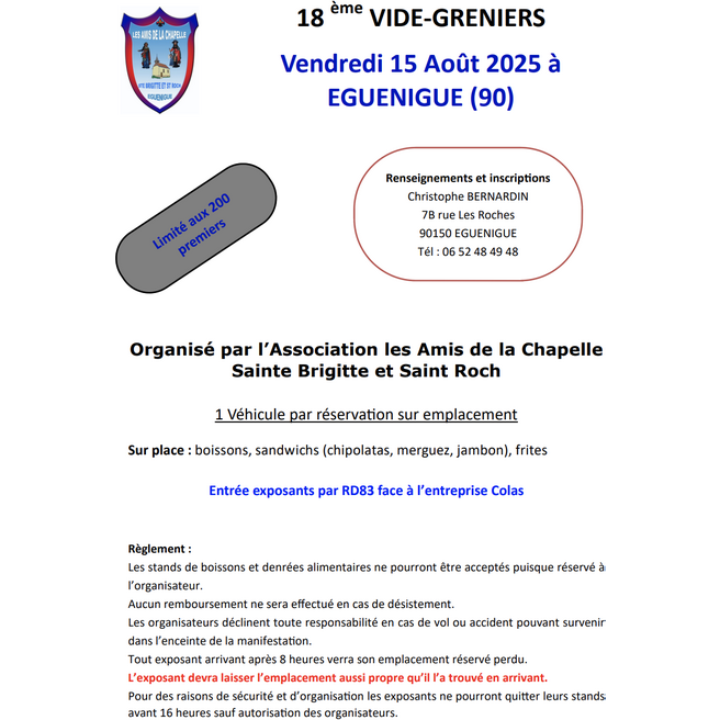 Vide-greniers et marché aux puces - Eguenigue De 8h à 17h Inscription obligatoire complète avant le 10 aout