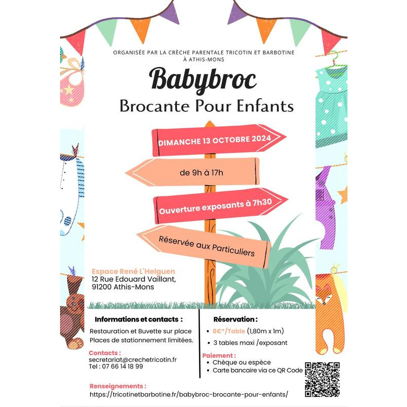 Vêtements, jouets pour enfants et matériel de puériculture.
