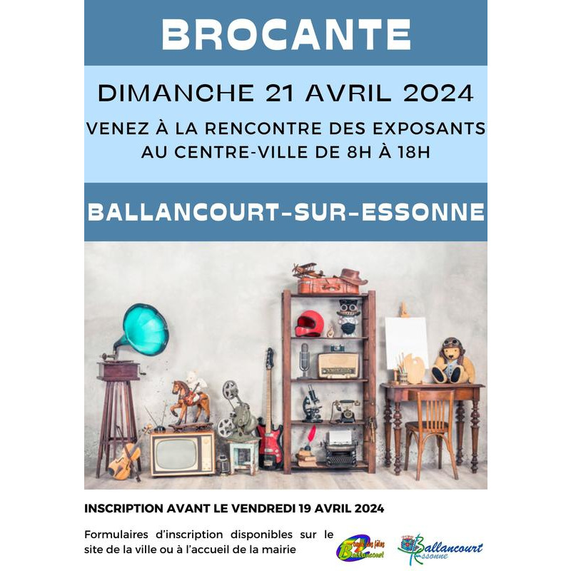 La brocante organisée par le comité des fêtes est de retour dimanche 21 avril de 8h00 à 18h00 au centre-ville de ballancourt, vous trouverez également pour l'occasion le troc aux plantes devant le lavoir !