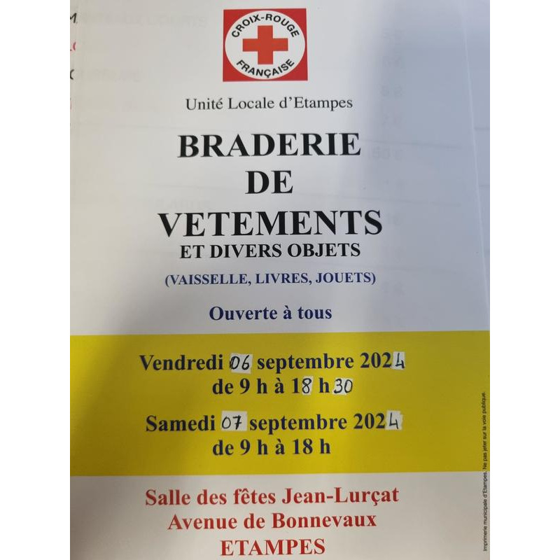 Braderie avec brocante organisee par la croix rouge