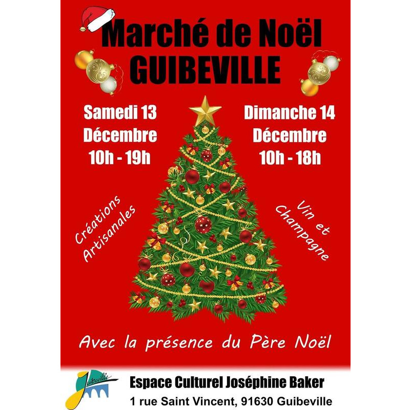 Marché de noël : créations artisanales, vin et champagne, présence du père noël.