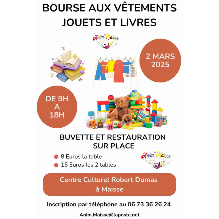 Venez faire de bonnes affaires à notre grande bourse aux vêtements, jouets et livres pour hommes, femmes et enfants !
