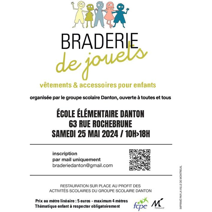 Braderie ouverte à tout le monde, organisée par les représentants des parents d'élèves de l'école danton à montreuil.