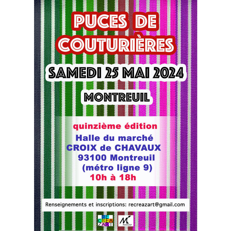 15ème édition des puces de couturières de montreuil, rassemblant, amateurs d'art textile, collectionneurs, brocante d'art du fil, linge ancien, tissus etniques, tissus d'éditeurs, fils, boutons, rubans, laines, perles, apprêts, fourniture pour modiste, fourreur etc ...