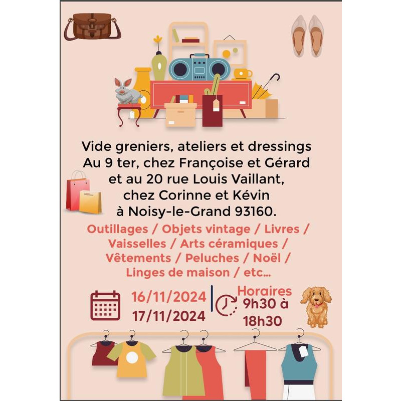 Vente d'articles de puériculture, jouets récents et anciens , articles et meubles vintage, céramiques, vaisselle, livres, vêtements homme, femme, enfants, outillage, instruments de musique etc