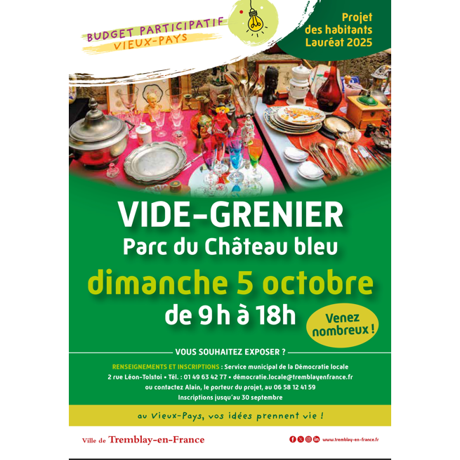 Vide greniers dans le cadre du budget participatif de la ville de tremblay en france , un projet organisé par les habitants , pour les habitants !