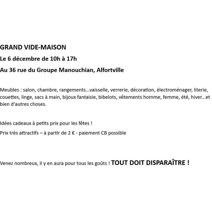 venez nombreux, il y en aura pour tous les goûts ! Tout doit disparaître !