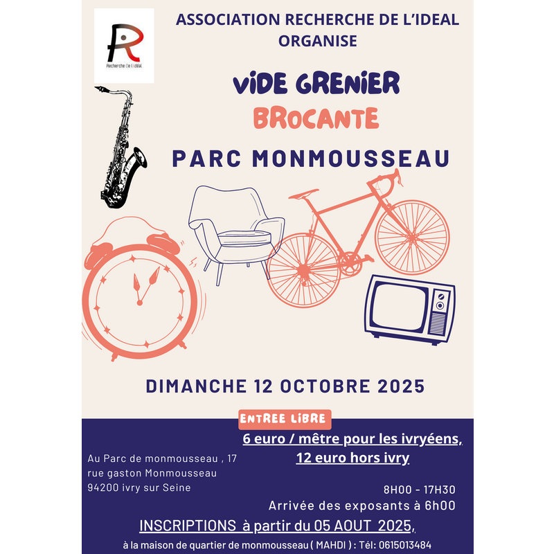 Sous le signe des jo, un grand vide grenier 4e édition qui se tiendra le dimanche 12 octobre au parc monmousseau à ivry.