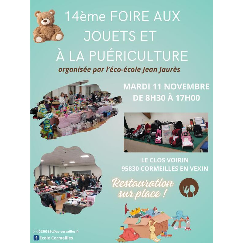 Les enseignants et les parents d’élèves organisent leur 14ème foire aux jouets et objets de puériculture, en intérieur (3 salles), au clos voirin à cormeilles en vexin.