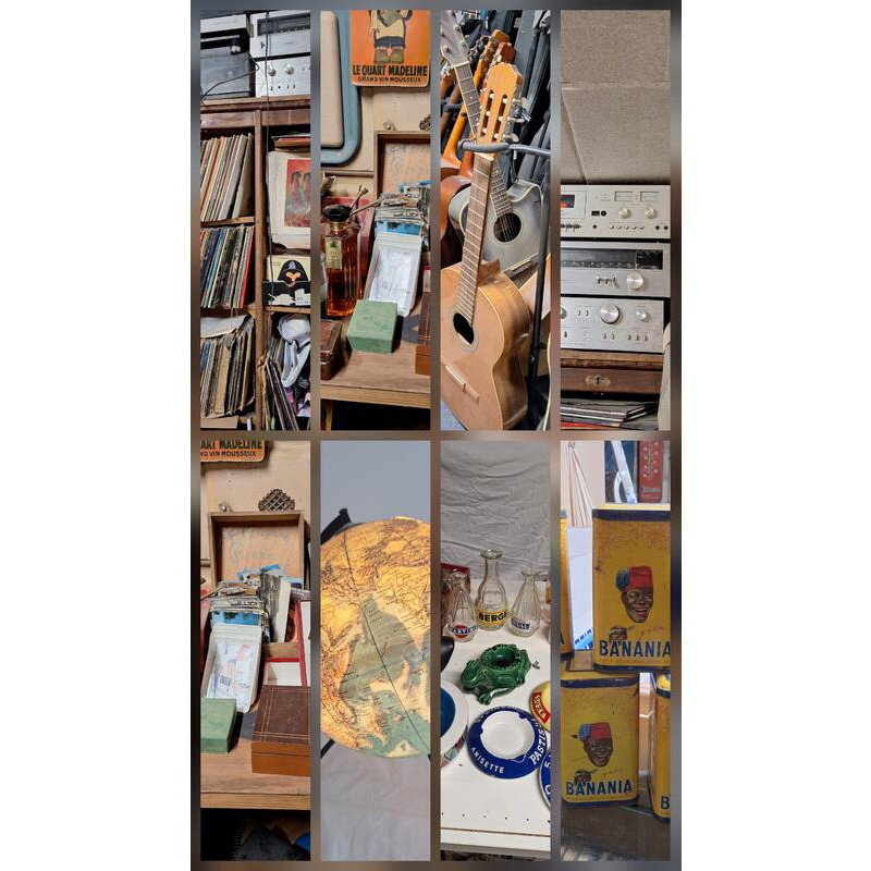Nous déménageons et ne pouvons pas emporter toutes nos années de chine. Vinyles ( beaucoup de 45t pop, rock et variétés francaises) mappemonde, appareils photos, livres et puzzle ortf, hifi vintage, luminaires vintages, petits meubles, boîtes metal, boîtes a cigarettes, jouets, plaque cheminée, livres, revues techniques auto moto, guitares vintages et notre bar 70's avec ses 2 fauteuil ... Nous contacter en mp pour plus d'info. Profitez en pour venir vous promenez dans le très beau parc de la ville parc de grouchy