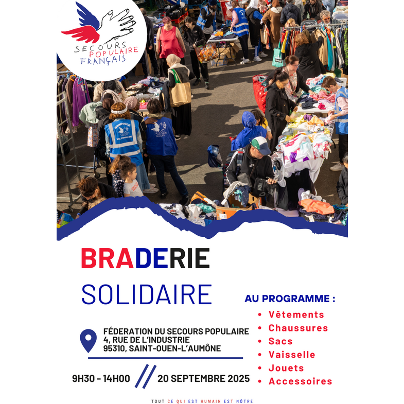 Venez chiner dans notre braderie tout en faisant une action solidaire. Les recettes seront affecter à une action soliddaire aupres des 15 000 personnes que nous aidons