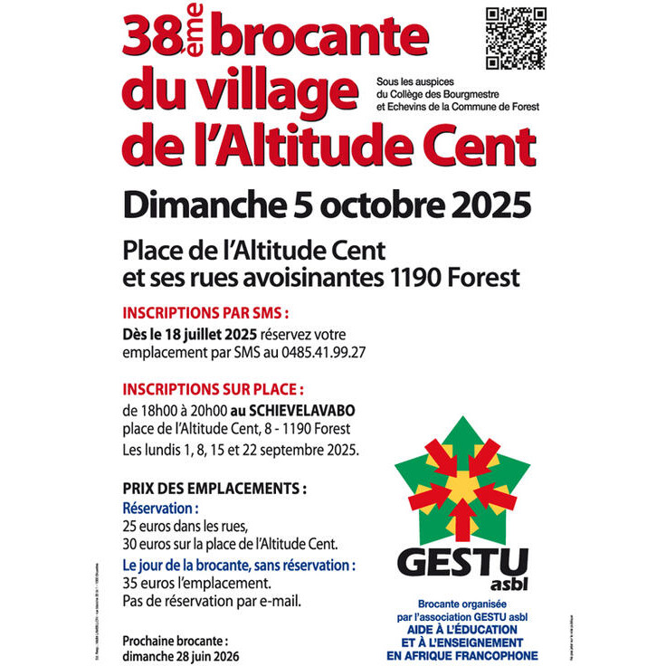 La place de l’altitude cent sera occupée par des brocanteurs, ainsi que les avenues saint-augustin, everard, oscar van goidtsnoven, des armures, victor rousseau et dans les rues du tournoi et de l’escrime.