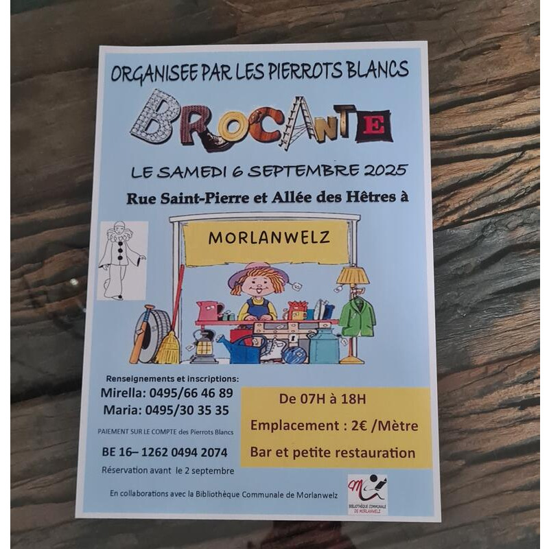 2e brocante réalisée par la société des pierrots blancs de morlanwelz.