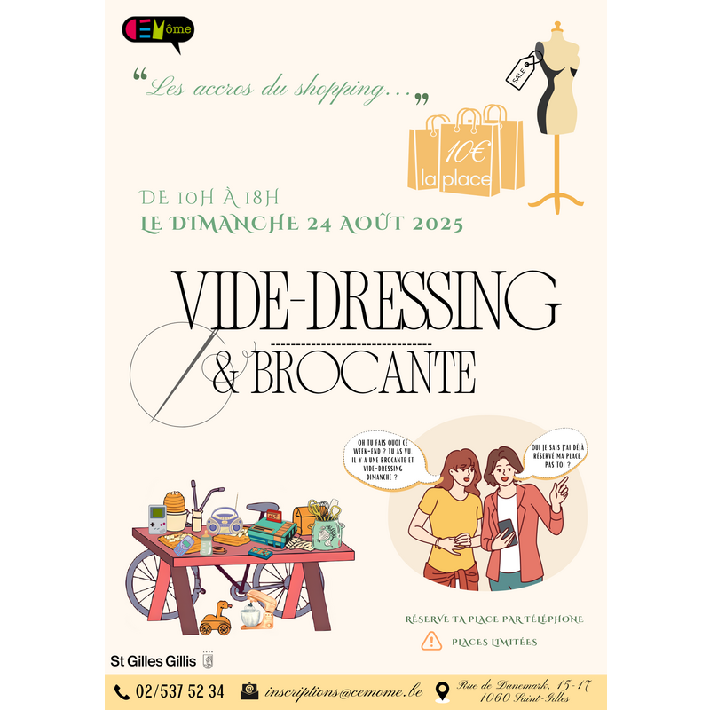 Viens flâner, fouiller, essayer, craquer, manger un bout et passer un bon moment parmi nous au grand vide-dressing & brocante organisé au cemôme.