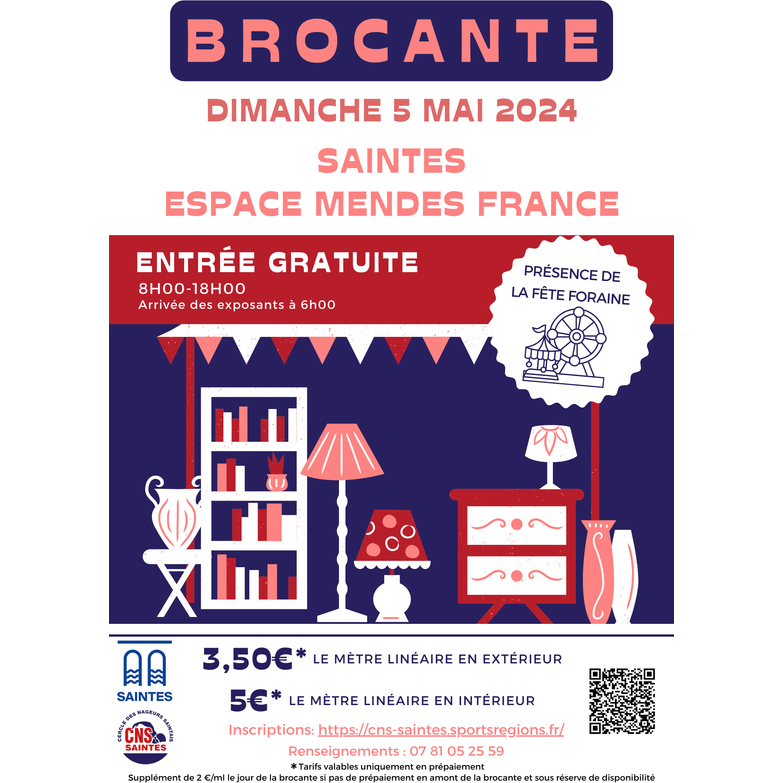alors en présence de la fête foraine , aux abords des rives de la charente, réservez sans tarder votre emplacement pour notre brocante/vide grenier du dimanche 5 mai 2024 en extérieur ou même en intérieur.